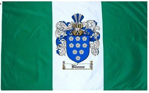 Blome Family Crest Flag / Coat of Arms Flag. You will receive a high quality 3' x 5' Polyester flag with two brass grommets. Proudly display your family heritage with this flag, or hang as a banner on a wall. Our flags make great gifts for birthdays, weddings, anniversaries, fathers day, mothers day, groomsmen gifts, and any other occasion