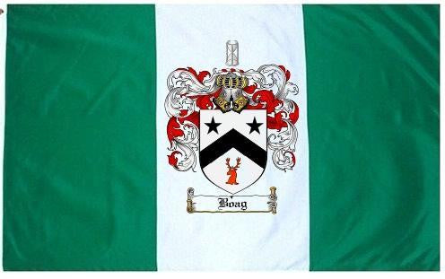 Boag Family Crest Flag / Coat of Arms Flag. You will receive a high quality 3' x 5' Polyester flag with two brass grommets. Proudly display your family heritage with this flag, or hang as a banner on a wall. Our flags make great gifts for birthdays, weddings, anniversaries, fathers day, mothers day, groomsmen gifts, and any other occasion