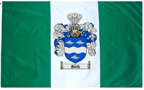 Bolk Family Crest Flag / Coat of Arms Flag. You will receive a high quality 3' x 5' Polyester flag with two brass grommets. Proudly display your family heritage with this flag, or hang as a banner on a wall. Our flags make great gifts for birthdays, weddings, anniversaries, fathers day, mothers day, groomsmen gifts, and any other occasion