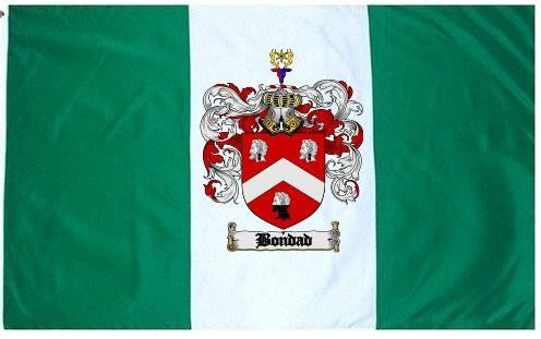 Bondad Family Crest Flag / Coat of Arms Flag. You will receive a high quality 3' x 5' Polyester flag with two brass grommets. Proudly display your family heritage with this flag, or hang as a banner on a wall. Our flags make great gifts for birthdays, weddings, anniversaries, fathers day, mothers day, groomsmen gifts, and any other occasion