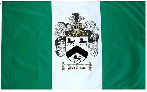 Boreham Family Crest Flag / Coat of Arms Flag. You will receive a high quality 3' x 5' Polyester flag with two brass grommets. Proudly display your family heritage with this flag, or hang as a banner on a wall. Our flags make great gifts for birthdays, weddings, anniversaries, fathers day, mothers day, groomsmen gifts, and any other occasion