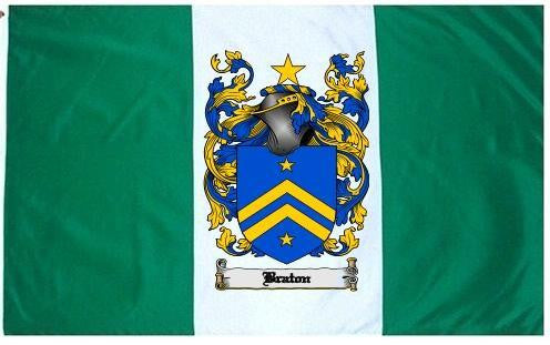 Braton Family Crest Flag / Coat of Arms Flag. You will receive a high quality 3' x 5' Polyester flag with two brass grommets. Proudly display your family heritage with this flag, or hang as a banner on a wall. Our flags make great gifts for birthdays, weddings, anniversaries, fathers day, mothers day, groomsmen gifts, and any other occasion