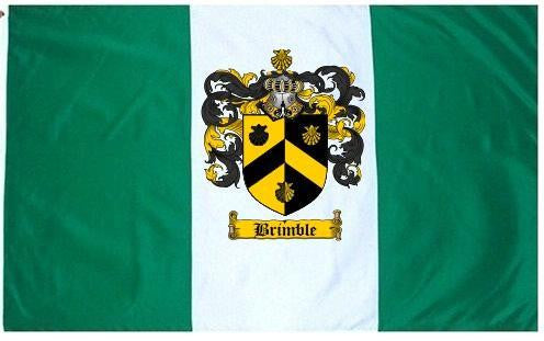 Brimble Family Crest Flag / Coat of Arms Flag. You will receive a high quality 3' x 5' Polyester flag with two brass grommets. Proudly display your family heritage with this flag, or hang as a banner on a wall. Our flags make great gifts for birthdays, weddings, anniversaries, fathers day, mothers day, groomsmen gifts, and any other occasion