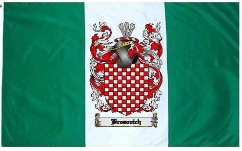 Brosovich Family Crest Flag / Coat of Arms Flag. You will receive a high quality 3' x 5' Polyester flag with two brass grommets. Proudly display your family heritage with this flag, or hang as a banner on a wall. Our flags make great gifts for birthdays, weddings, anniversaries, fathers day, mothers day, groomsmen gifts, and any other occasion