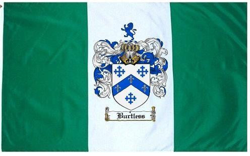 Burtless Family Crest Flag / Coat of Arms Flag. You will receive a high quality 3' x 5' Polyester flag with two brass grommets. Proudly display your family heritage with this flag, or hang as a banner on a wall. Our flags make great gifts for birthdays, weddings, anniversaries, fathers day, mothers day, groomsmen gifts, and any other occasion