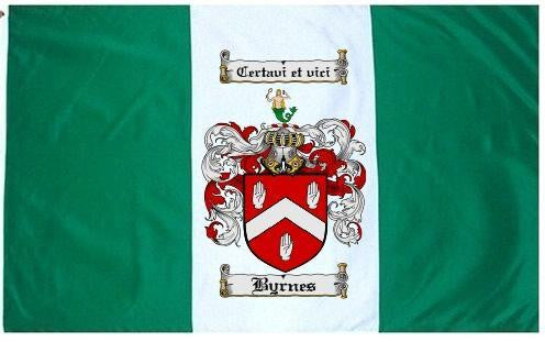 Byrnes Family Crest Flag / Coat of Arms Flag. You will receive a high quality 3' x 5' Polyester flag with two brass grommets. Proudly display your family heritage with this flag, or hang as a banner on a wall. Our flags make great gifts for birthdays, weddings, anniversaries, fathers day, mothers day, groomsmen gifts, and any other occasion