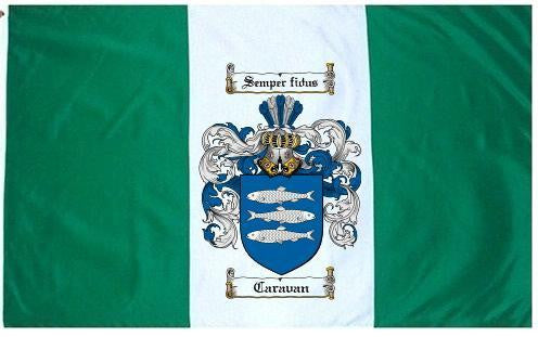 Caravan Family Crest Flag / Coat of Arms Flag. You will receive a high quality 3' x 5' Polyester flag with two brass grommets. Proudly display your family heritage with this flag, or hang as a banner on a wall. Our flags make great gifts for birthdays, weddings, anniversaries, fathers day, mothers day, groomsmen gifts, and any other occasion