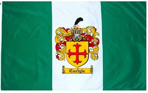 Carlyle Family Crest Flag / Coat of Arms Flag. You will receive a high quality 3' x 5' Polyester flag with two brass grommets. Proudly display your family heritage with this flag, or hang as a banner on a wall. Our flags make great gifts for birthdays, weddings, anniversaries, fathers day, mothers day, groomsmen gifts, and any other occasion