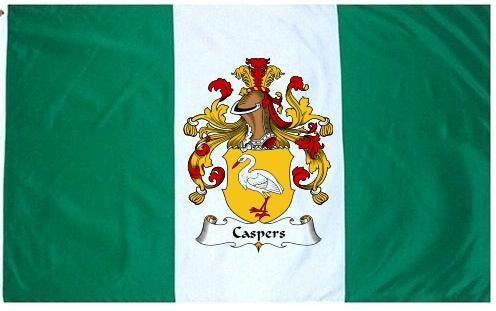 Caspers Family Crest Flag / Coat of Arms Flag. You will receive a high quality 3' x 5' Polyester flag with two brass grommets. Proudly display your family heritage with this flag, or hang as a banner on a wall. Our flags make great gifts for birthdays, weddings, anniversaries, fathers day, mothers day, groomsmen gifts, and any other occasion
