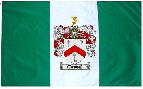 Cassel Family Crest Flag / Coat of Arms Flag. You will receive a high quality 3' x 5' Polyester flag with two brass grommets. Proudly display your family heritage with this flag, or hang as a banner on a wall. Our flags make great gifts for birthdays, weddings, anniversaries, fathers day, mothers day, groomsmen gifts, and any other occasion