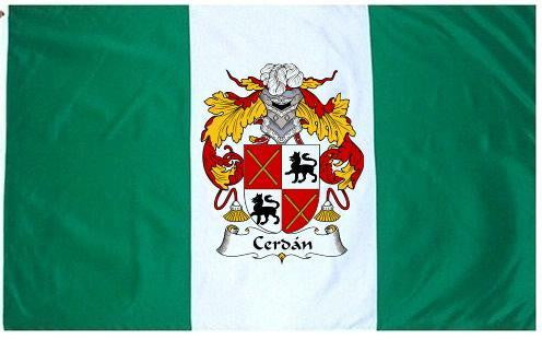 Cerdan Family Crest Flag / Coat of Arms Flag. You will receive a high quality 3' x 5' Polyester flag with two brass grommets. Proudly display your family heritage with this flag, or hang as a banner on a wall. Our flags make great gifts for birthdays, weddings, anniversaries, fathers day, mothers day, groomsmen gifts, and any other occasion