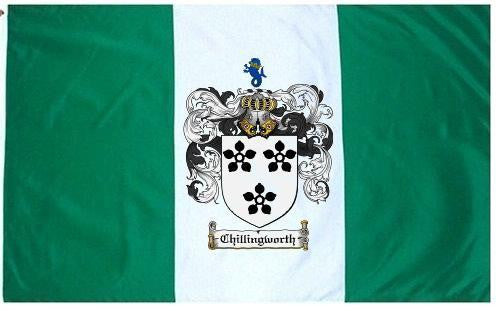 Chillingworth Family Crest Flag / Coat of Arms Flag. You will receive a high quality 3' x 5' Polyester flag with two brass grommets. Proudly display your family heritage with this flag, or hang as a banner on a wall. Our flags make great gifts for birthdays, weddings, anniversaries, fathers day, mothers day, groomsmen gifts, and any other occasion