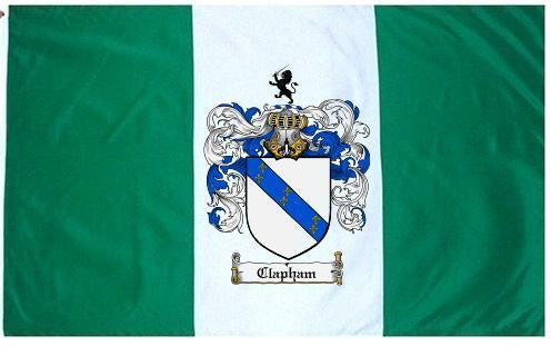 Clapham Family Crest Flag / Coat of Arms Flag. You will receive a high quality 3' x 5' Polyester flag with two brass grommets. Proudly display your family heritage with this flag, or hang as a banner on a wall. Our flags make great gifts for birthdays, weddings, anniversaries, fathers day, mothers day, groomsmen gifts, and any other occasion