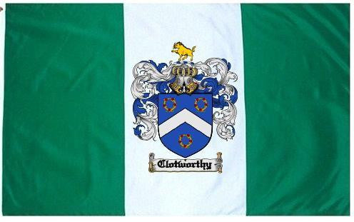 Clotworthy Family Crest Flag / Coat of Arms Flag. You will receive a high quality 3' x 5' Polyester flag with two brass grommets. Proudly display your family heritage with this flag, or hang as a banner on a wall. Our flags make great gifts for birthdays, weddings, anniversaries, fathers day, mothers day, groomsmen gifts, and any other occasion