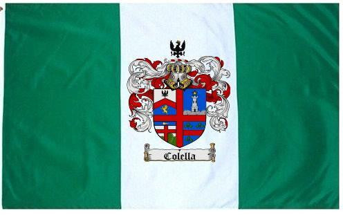 Colella Family Crest Flag / Coat of Arms Flag. You will receive a high quality 3' x 5' Polyester flag with two brass grommets. Proudly display your family heritage with this flag, or hang as a banner on a wall. Our flags make great gifts for birthdays, weddings, anniversaries, fathers day, mothers day, groomsmen gifts, and any other occasion