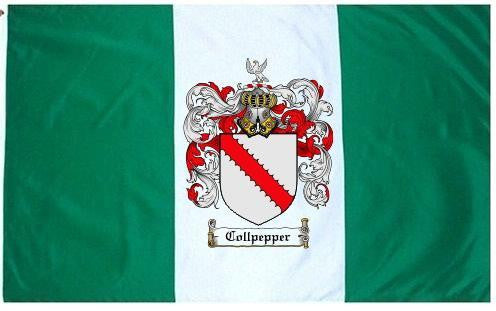Collpepper Family Crest Flag / Coat of Arms Flag. You will receive a high quality 3' x 5' Polyester flag with two brass grommets. Proudly display your family heritage with this flag, or hang as a banner on a wall. Our flags make great gifts for birthdays, weddings, anniversaries, fathers day, mothers day, groomsmen gifts, and any other occasion
