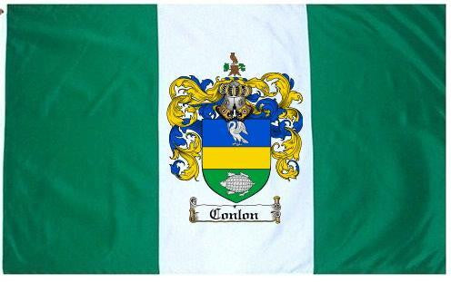 Conlon Family Crest Flag / Coat of Arms Flag. You will receive a high quality 3' x 5' Polyester flag with two brass grommets. Proudly display your family heritage with this flag, or hang as a banner on a wall. Our flags make great gifts for birthdays, weddings, anniversaries, fathers day, mothers day, groomsmen gifts, and any other occasion