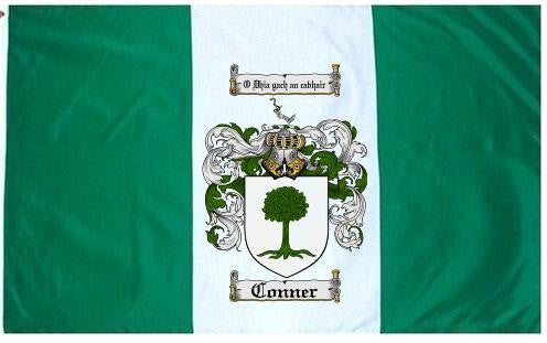 Conner Family Crest Flag / Coat of Arms Flag. You will receive a high quality 3' x 5' Polyester flag with two brass grommets. Proudly display your family heritage with this flag, or hang as a banner on a wall. Our flags make great gifts for birthdays, weddings, anniversaries, fathers day, mothers day, groomsmen gifts, and any other occasion