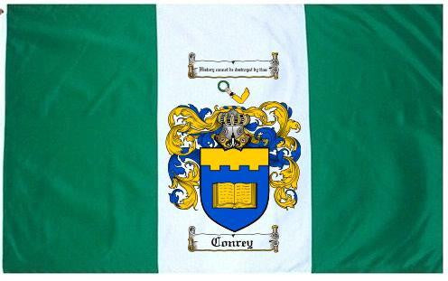 Conrey Family Crest Flag / Coat of Arms Flag. You will receive a high quality 3' x 5' Polyester flag with two brass grommets. Proudly display your family heritage with this flag, or hang as a banner on a wall. Our flags make great gifts for birthdays, weddings, anniversaries, fathers day, mothers day, groomsmen gifts, and any other occasion