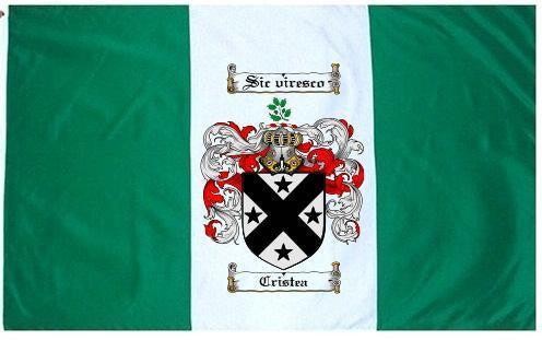 Cristea Family Crest Flag / Coat of Arms Flag. You will receive a high quality 3' x 5' Polyester flag with two brass grommets. Proudly display your family heritage with this flag, or hang as a banner on a wall. Our flags make great gifts for birthdays, weddings, anniversaries, fathers day, mothers day, groomsmen gifts, and any other occasion