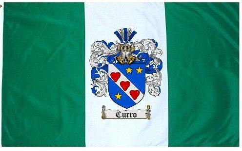 Curro Family Crest Flag / Coat of Arms Flag. You will receive a high quality 3' x 5' Polyester flag with two brass grommets. Proudly display your family heritage with this flag, or hang as a banner on a wall. Our flags make great gifts for birthdays, weddings, anniversaries, fathers day, mothers day, groomsmen gifts, and any other occasion