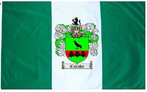 Cziraky Family Crest Flag / Coat of Arms Flag. You will receive a high quality 3' x 5' Polyester flag with two brass grommets. Proudly display your family heritage with this flag, or hang as a banner on a wall. Our flags make great gifts for birthdays, weddings, anniversaries, fathers day, mothers day, groomsmen gifts, and any other occasion