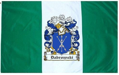 Dabrowski Family Crest Flag / Coat of Arms Flag. You will receive a high quality 3' x 5' Polyester flag with two brass grommets. Proudly display your family heritage with this flag, or hang as a banner on a wall. Our flags make great gifts for birthdays, weddings, anniversaries, fathers day, mothers day, groomsmen gifts, and any other occasion