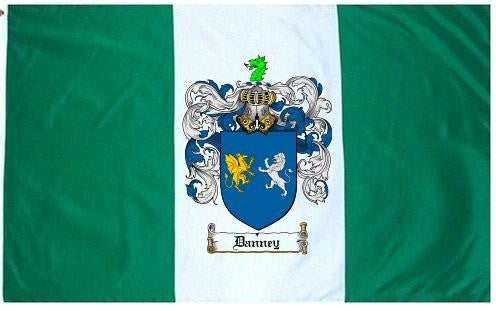 Danney Family Crest Flag / Coat of Arms Flag. You will receive a high quality 3' x 5' Polyester flag with two brass grommets. Proudly display your family heritage with this flag, or hang as a banner on a wall. Our flags make great gifts for birthdays, weddings, anniversaries, fathers day, mothers day, groomsmen gifts, and any other occasion