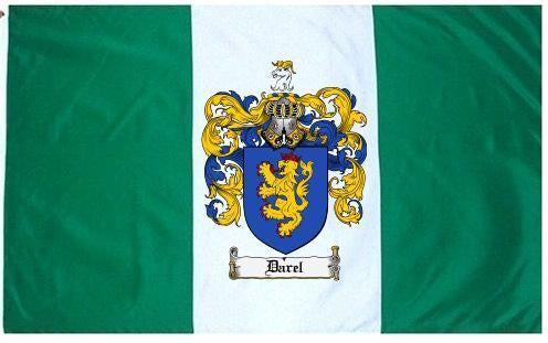 Darel Family Crest Flag / Coat of Arms Flag. You will receive a high quality 3' x 5' Polyester flag with two brass grommets. Proudly display your family heritage with this flag, or hang as a banner on a wall. Our flags make great gifts for birthdays, weddings, anniversaries, fathers day, mothers day, groomsmen gifts, and any other occasion