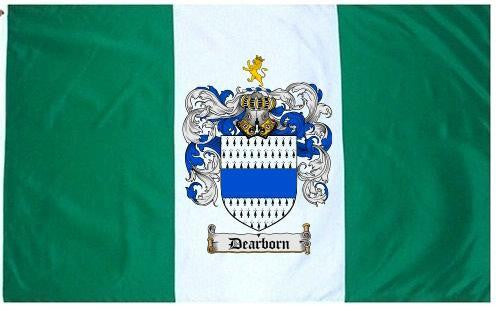 Dearborn Family Crest Flag / Coat of Arms Flag. You will receive a high quality 3' x 5' Polyester flag with two brass grommets. Proudly display your family heritage with this flag, or hang as a banner on a wall. Our flags make great gifts for birthdays, weddings, anniversaries, fathers day, mothers day, groomsmen gifts, and any other occasion