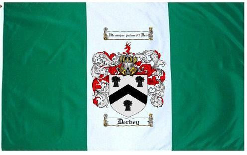 Derbey Family Crest Flag / Coat of Arms Flag. You will receive a high quality 3' x 5' Polyester flag with two brass grommets. Proudly display your family heritage with this flag, or hang as a banner on a wall. Our flags make great gifts for birthdays, weddings, anniversaries, fathers day, mothers day, groomsmen gifts, and any other occasion