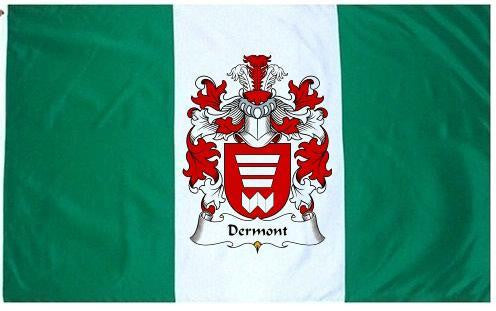 Dermont Family Crest Flag / Coat of Arms Flag. You will receive a high quality 3' x 5' Polyester flag with two brass grommets. Proudly display your family heritage with this flag, or hang as a banner on a wall. Our flags make great gifts for birthdays, weddings, anniversaries, fathers day, mothers day, groomsmen gifts, and any other occasion
