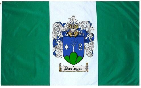 Dieringer Family Crest Flag / Coat of Arms Flag. You will receive a high quality 3' x 5' Polyester flag with two brass grommets. Proudly display your family heritage with this flag, or hang as a banner on a wall. Our flags make great gifts for birthdays, weddings, anniversaries, fathers day, mothers day, groomsmen gifts, and any other occasion