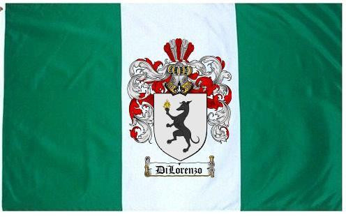 Dilorenzo Family Crest Flag / Coat of Arms Flag. You will receive a high quality 3' x 5' Polyester flag with two brass grommets. Proudly display your family heritage with this flag, or hang as a banner on a wall. Our flags make great gifts for birthdays, weddings, anniversaries, fathers day, mothers day, groomsmen gifts, and any other occasion