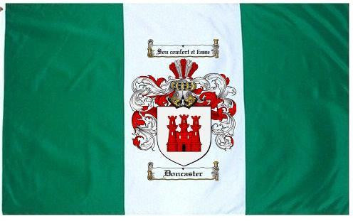 Doncaster Family Crest Flag / Coat of Arms Flag. You will receive a high quality 3' x 5' Polyester flag with two brass grommets. Proudly display your family heritage with this flag, or hang as a banner on a wall. Our flags make great gifts for birthdays, weddings, anniversaries, fathers day, mothers day, groomsmen gifts, and any other occasion