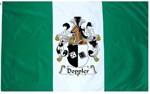 Doppler Family Crest Flag / Coat of Arms Flag. You will receive a high quality 3' x 5' Polyester flag with two brass grommets. Proudly display your family heritage with this flag, or hang as a banner on a wall. Our flags make great gifts for birthdays, weddings, anniversaries, fathers day, mothers day, groomsmen gifts, and any other occasion