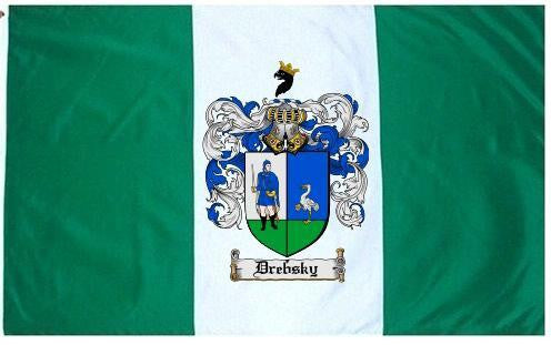Drebsky Family Crest Flag / Coat of Arms Flag. You will receive a high quality 3' x 5' Polyester flag with two brass grommets. Proudly display your family heritage with this flag, or hang as a banner on a wall. Our flags make great gifts for birthdays, weddings, anniversaries, fathers day, mothers day, groomsmen gifts, and any other occasion