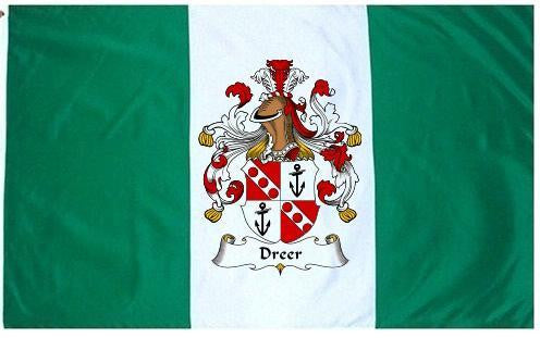 Dreer Family Crest Flag / Coat of Arms Flag. You will receive a high quality 3' x 5' Polyester flag with two brass grommets. Proudly display your family heritage with this flag, or hang as a banner on a wall. Our flags make great gifts for birthdays, weddings, anniversaries, fathers day, mothers day, groomsmen gifts, and any other occasion