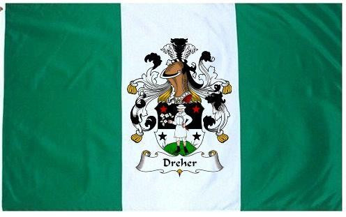Dreher Family Crest Flag / Coat of Arms Flag. You will receive a high quality 3' x 5' Polyester flag with two brass grommets. Proudly display your family heritage with this flag, or hang as a banner on a wall. Our flags make great gifts for birthdays, weddings, anniversaries, fathers day, mothers day, groomsmen gifts, and any other occasion