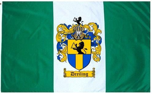 Dreiling Family Crest Flag / Coat of Arms Flag. You will receive a high quality 3' x 5' Polyester flag with two brass grommets. Proudly display your family heritage with this flag, or hang as a banner on a wall. Our flags make great gifts for birthdays, weddings, anniversaries, fathers day, mothers day, groomsmen gifts, and any other occasion