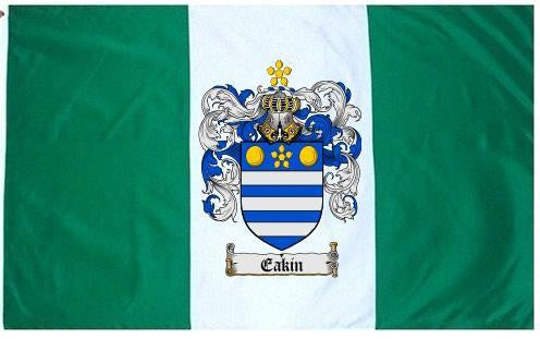Eakin Family Crest Flag / Coat of Arms Flag. You will receive a high quality 3' x 5' Polyester flag with two brass grommets. Proudly display your family heritage with this flag, or hang as a banner on a wall. Our flags make great gifts for birthdays, weddings, anniversaries, fathers day, mothers day, groomsmen gifts, and any other occasion