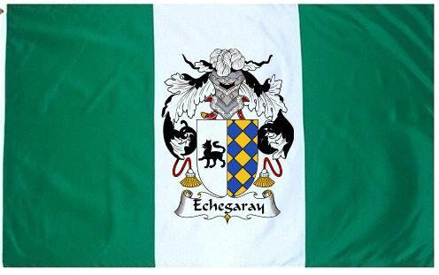 Echegaray Family Crest Flag / Coat of Arms Flag. You will receive a high quality 3' x 5' Polyester flag with two brass grommets. Proudly display your family heritage with this flag, or hang as a banner on a wall. Our flags make great gifts for birthdays, weddings, anniversaries, fathers day, mothers day, groomsmen gifts, and any other occasion