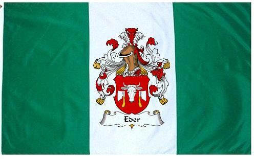 Eder Family Crest Flag / Coat of Arms Flag. You will receive a high quality 3' x 5' Polyester flag with two brass grommets. Proudly display your family heritage with this flag, or hang as a banner on a wall. Our flags make great gifts for birthdays, weddings, anniversaries, fathers day, mothers day, groomsmen gifts, and any other occasion