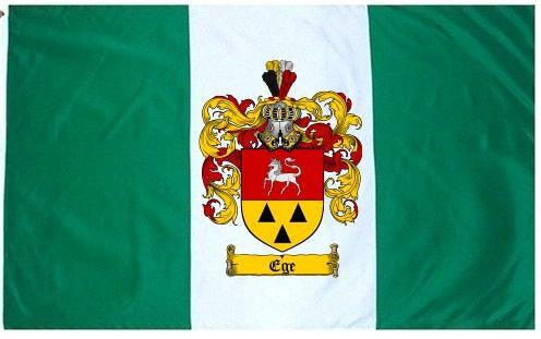 Ege Family Crest Flag / Coat of Arms Flag. You will receive a high quality 3' x 5' Polyester flag with two brass grommets. Proudly display your family heritage with this flag, or hang as a banner on a wall. Our flags make great gifts for birthdays, weddings, anniversaries, fathers day, mothers day, groomsmen gifts, and any other occasion