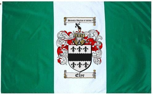 Elye Family Crest Flag / Coat of Arms Flag. You will receive a high quality 3' x 5' Polyester flag with two brass grommets. Proudly display your family heritage with this flag, or hang as a banner on a wall. Our flags make great gifts for birthdays, weddings, anniversaries, fathers day, mothers day, groomsmen gifts, and any other occasion