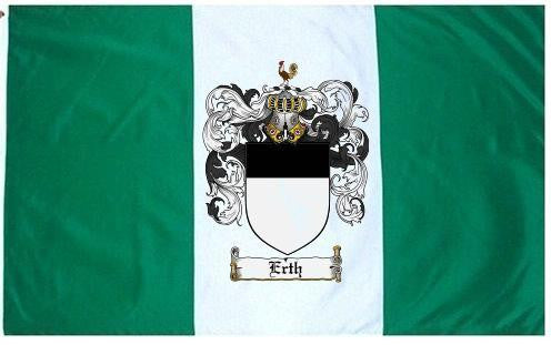 Erth Family Crest Flag / Coat of Arms Flag. You will receive a high quality 3' x 5' Polyester flag with two brass grommets. Proudly display your family heritage with this flag, or hang as a banner on a wall. Our flags make great gifts for birthdays, weddings, anniversaries, fathers day, mothers day, groomsmen gifts, and any other occasion