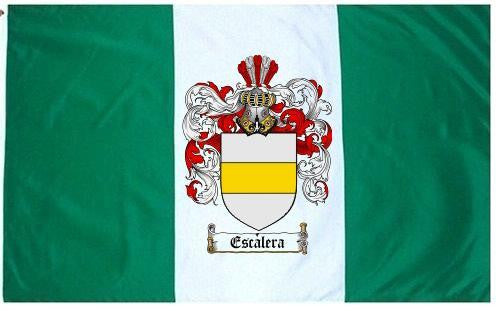 Escalera Family Crest Flag / Coat of Arms Flag. You will receive a high quality 3' x 5' Polyester flag with two brass grommets. Proudly display your family heritage with this flag, or hang as a banner on a wall. Our flags make great gifts for birthdays, weddings, anniversaries, fathers day, mothers day, groomsmen gifts, and any other occasion