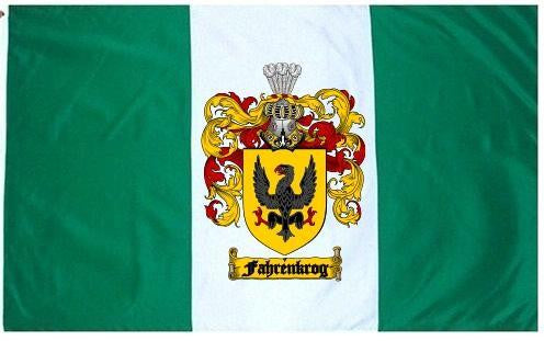 Fahrenkrog Family Crest Flag / Coat of Arms Flag. You will receive a high quality 3' x 5' Polyester flag with two brass grommets. Proudly display your family heritage with this flag, or hang as a banner on a wall. Our flags make great gifts for birthdays, weddings, anniversaries, fathers day, mothers day, groomsmen gifts, and any other occasion