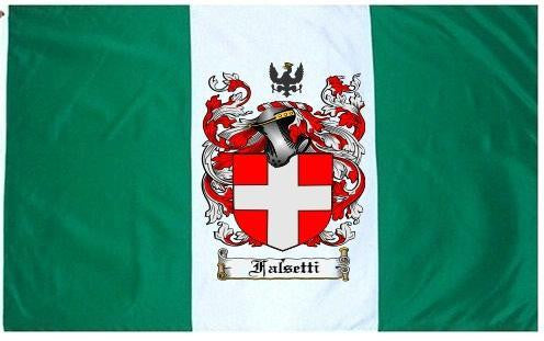 Falsetti Family Crest Flag / Coat of Arms Flag. You will receive a high quality 3' x 5' Polyester flag with two brass grommets. Proudly display your family heritage with this flag, or hang as a banner on a wall. Our flags make great gifts for birthdays, weddings, anniversaries, fathers day, mothers day, groomsmen gifts, and any other occasion