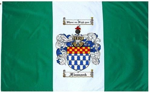 Flamank Family Crest Flag / Coat of Arms Flag. You will receive a high quality 3' x 5' Polyester flag with two brass grommets. Proudly display your family heritage with this flag, or hang as a banner on a wall. Our flags make great gifts for birthdays, weddings, anniversaries, fathers day, mothers day, groomsmen gifts, and any other occasion
